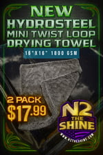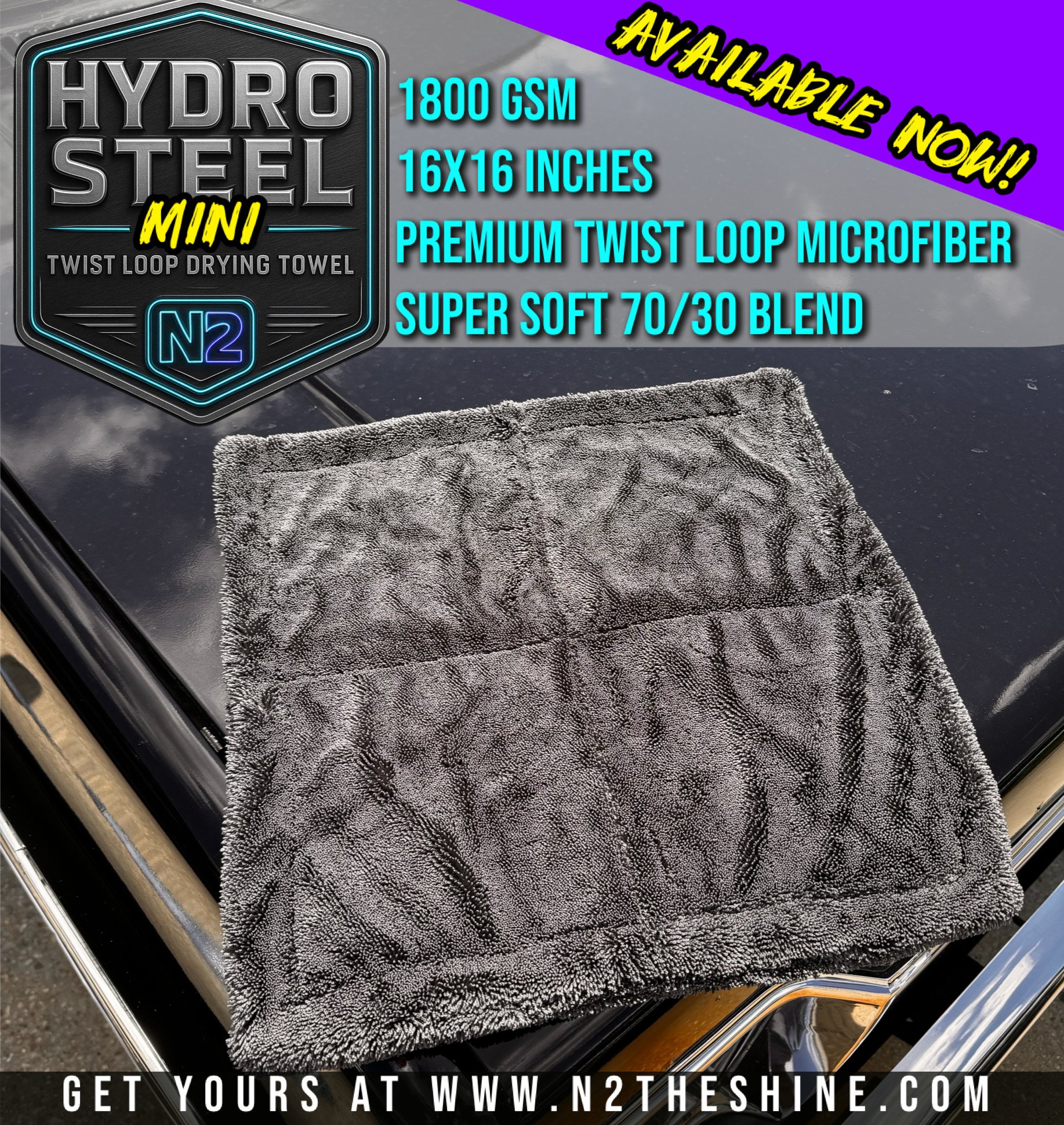 Meet the HydroSteel Mini — the ultimate weapon in compact drying power. This 16” x 16” twist-loop microfiber towel punches way above its weight with a dense, ultra-thirsty 1800GSM construction that sucks up water like a vacuum, leaving behind nothing but spotless, streak-free gloss.